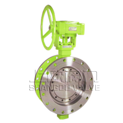 本產(chǎn)品由閥體、蝶板、密封圈、傳動機構等主要部件組成。其結構采用三維偏心原理設計,在硬軟多層密封兼容的新工藝加工后,使蝶閥在運行工作時,減少了其扭矩力,達到省力、節(jié)能之效果。從而確保蝶閥整體的抗腐蝕、耐高溫、抗磨損的可靠性。